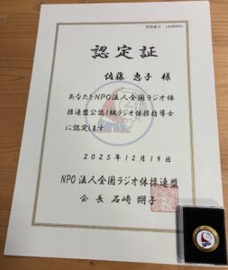 このたび、当社スタッフが 「1級ラジオ体操指導士」 の資格を取得いたしましたのでお知らせいたします。